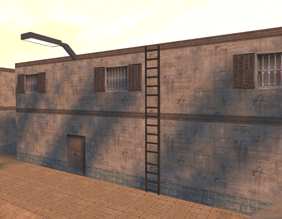 On se propose, dans la map mp_basrah, d'appliquer une échelle sur un mur afin de pouvoir accéder aux espaces supérieurs de la 'casbah'.