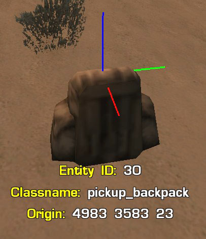 flags, briefcase, pickup armes, santé, armure et backpacks.