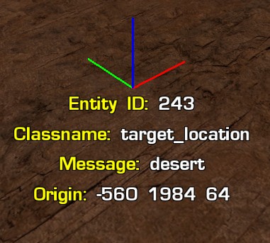 Je rappelle que le fichier vok_sources.ent représente la copie conforme de la zone texte du fichier vok.bsp encapsulé dans le fichier d’origine vok.pk3. Ce fichier ne sera jamais altéré par le mode Ent Editor et restera toujours la référence à laquelle on pourra repartir pour de nouveaux essais.