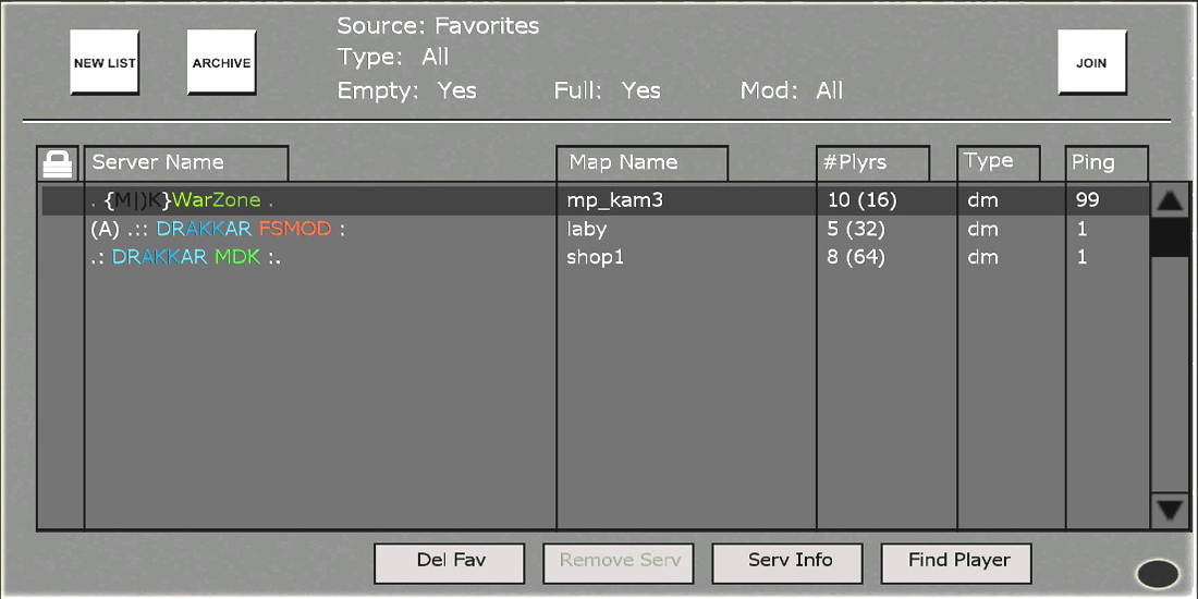 L'ancienne version client présentait une lacune concernant le transfert rapide d'un serveur issu de la liste déroulante, vers la liste des favoris. En fait, la touche prévue à cet effet était absente et il était nécessaire de saisir l'IP du serveur choisi. Méthode longue et fastidieuse qui a été remplacée par une ergonomie plus aisée.