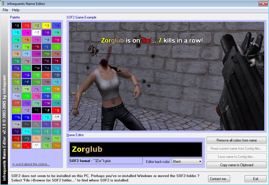 Sans doute le meilleur logiciel d'édition de caractères en couleur pour SOF2.