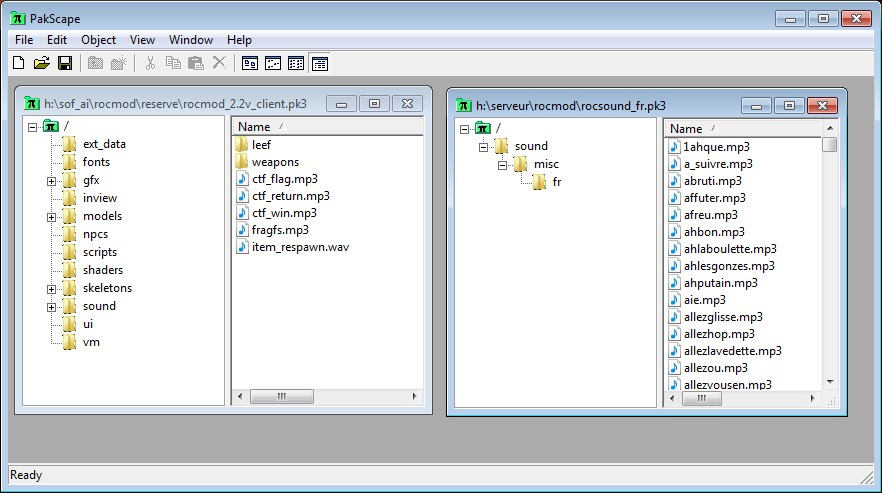 Ainsi, à l'inverse, si vous désirez ouvrir un fichier pk3 il faudra d'abord changer l'extension pk3 en zip, puis le décompresser.